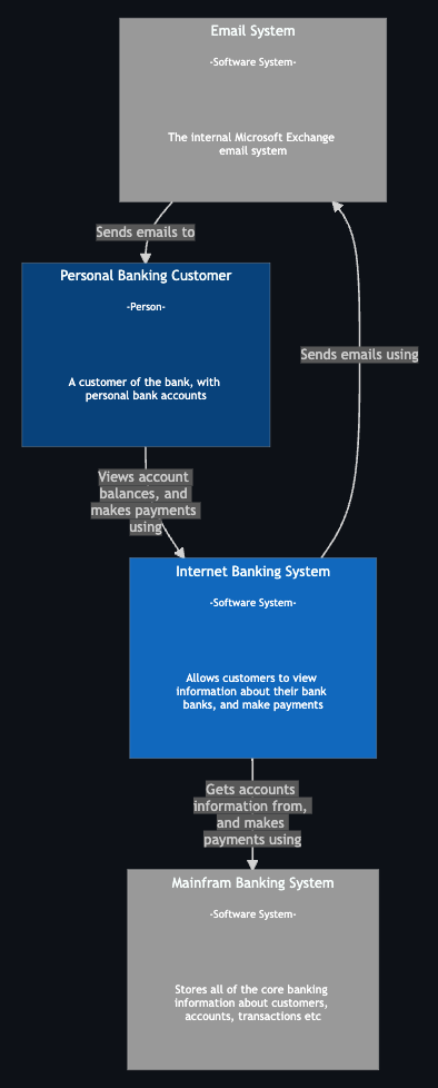 The examples used below are Mermaid versions of the examples Simon uses on his C4 website.