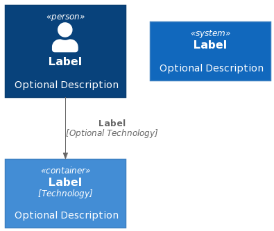 Rel(personAlias, containerAlias, "Label", "Optional Technology")