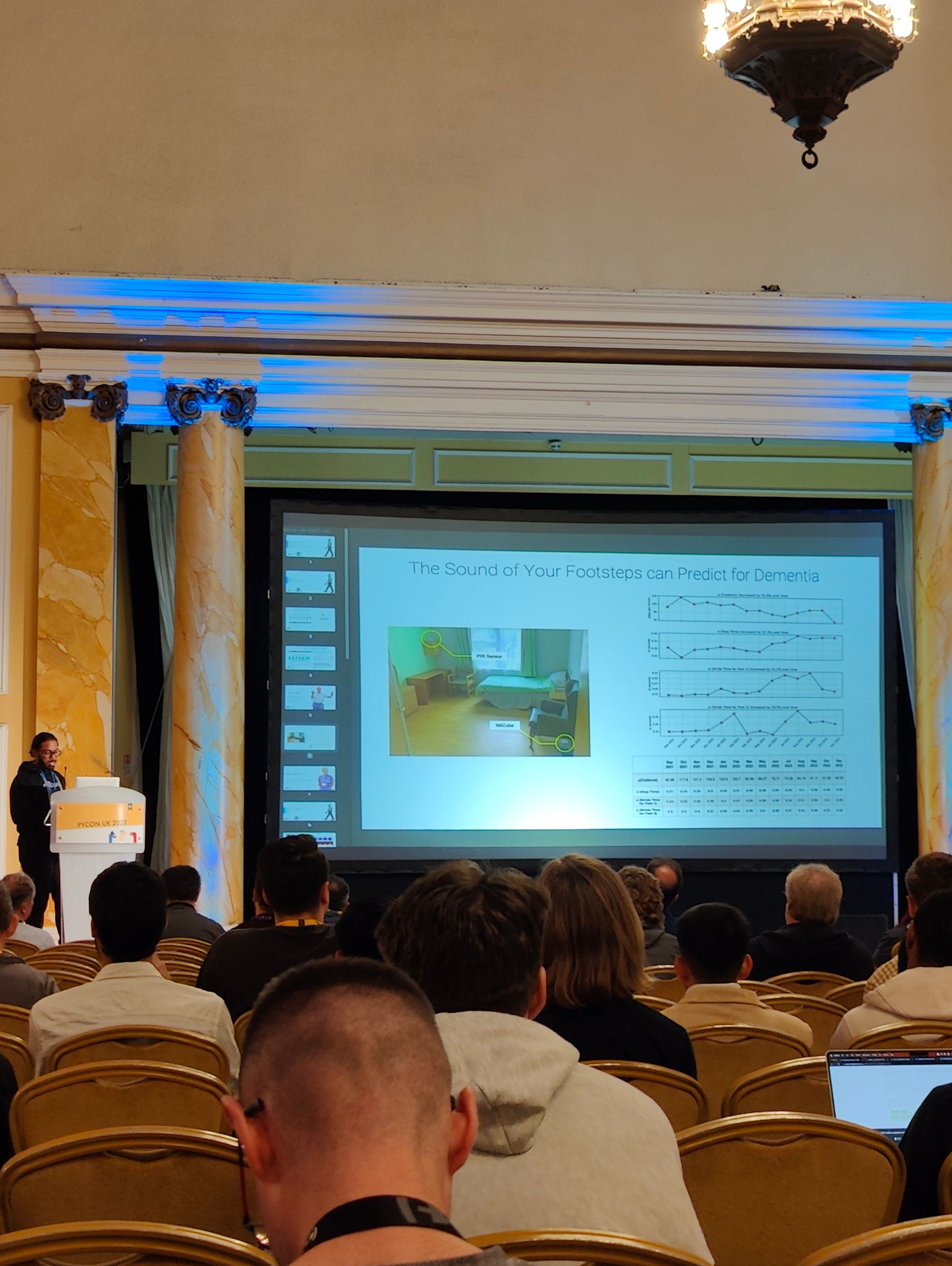 The most mind blowing talk for me: Debayan talked through how his company had worked using research into the correlation between reduced mobility and dementia to build a device that could listen to the footsteps of a care home resident, then would out if there is a deterioration over time of their stride / gait that could be indicating an increase fall risk and/or progression towards dementia.