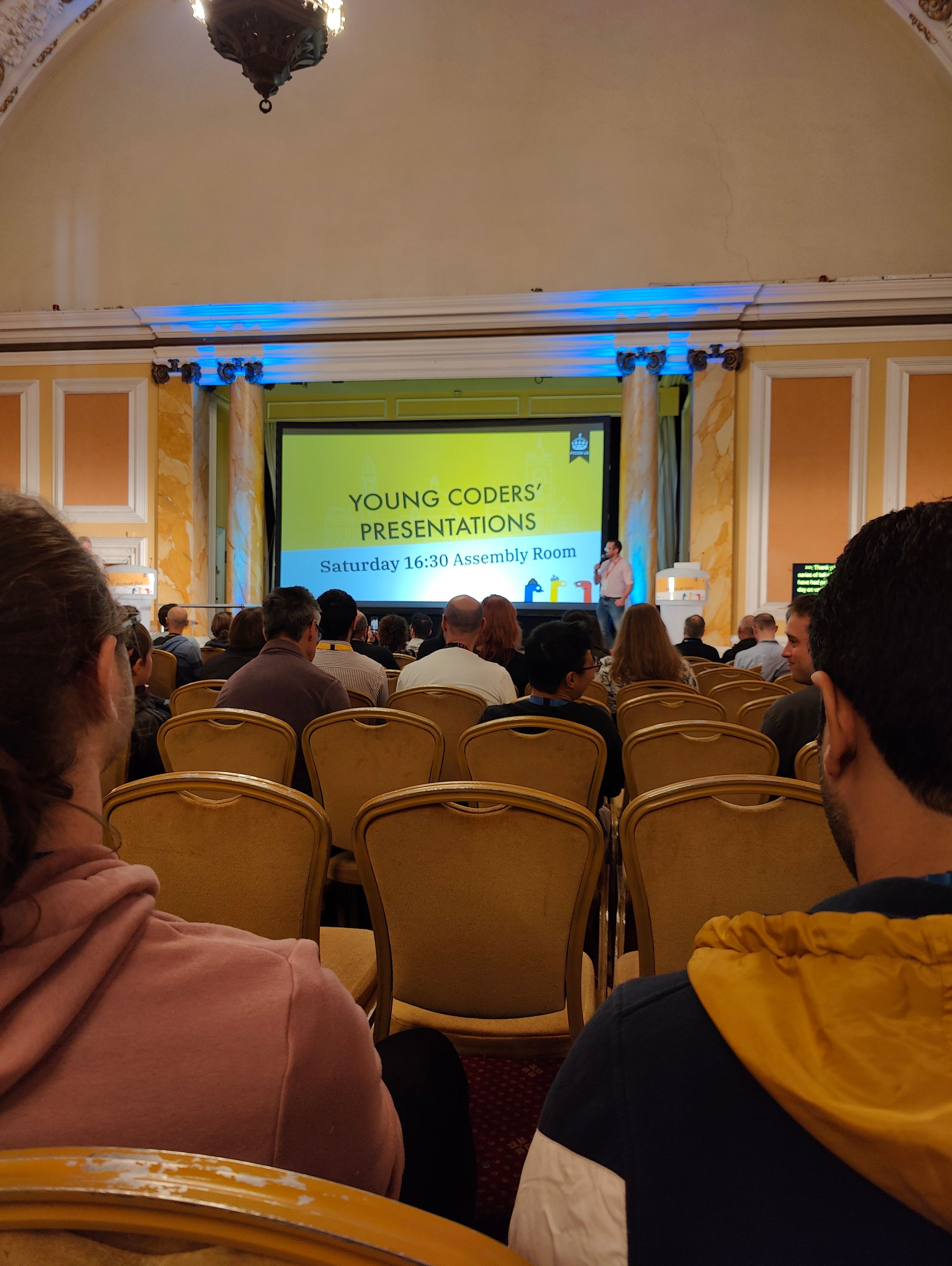 A note here: PyCon UK had a few tracks for those new to development: one was DjangoGirls (a workshop intended to help women learn web development with no prior experience) and the other was Young Coders who had a day of hacking away at projects that they then got to stand up and present to us all.