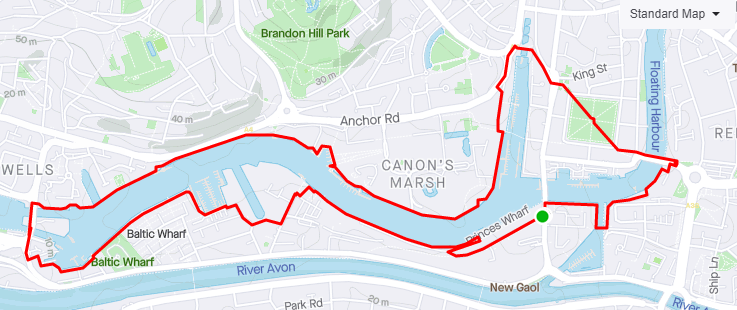 Takes you along the beautiful harbourside, through the ship yards, then along the promenade of Canon's Marsh. At the end crosses the center and Queens Park before a short hop past St Mary Redcliffe