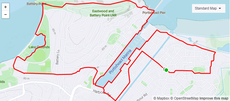 Parking on Phoenix Way (normally spaces free, lots of parking in the surrounding estate), walks along the River Severn before hitting the Portishead Marina. Walk goes over the hill through a wooded road to the Lake, then back round to the harbourside.
